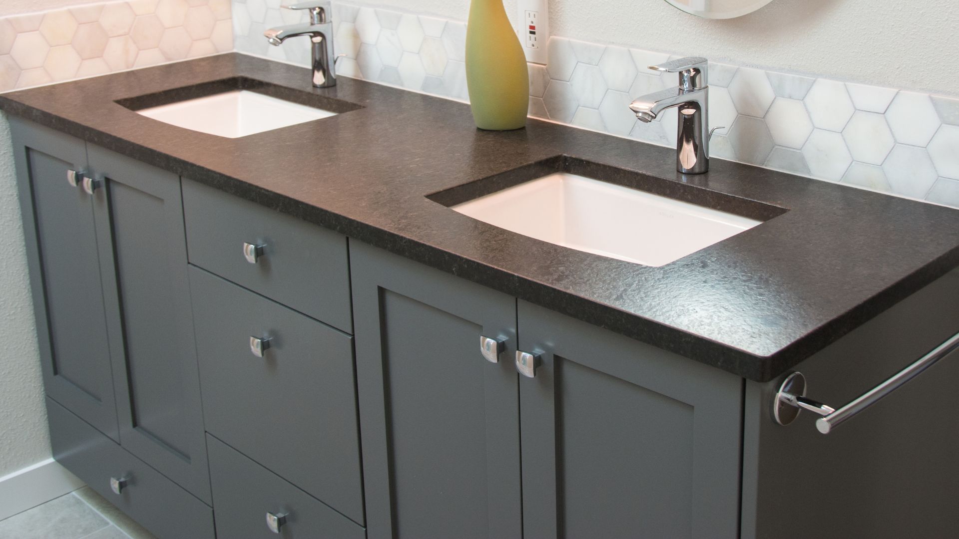 Maximize functionality and convenience with custom double sink vanities, perfect for shared bathrooms and added efficiency.