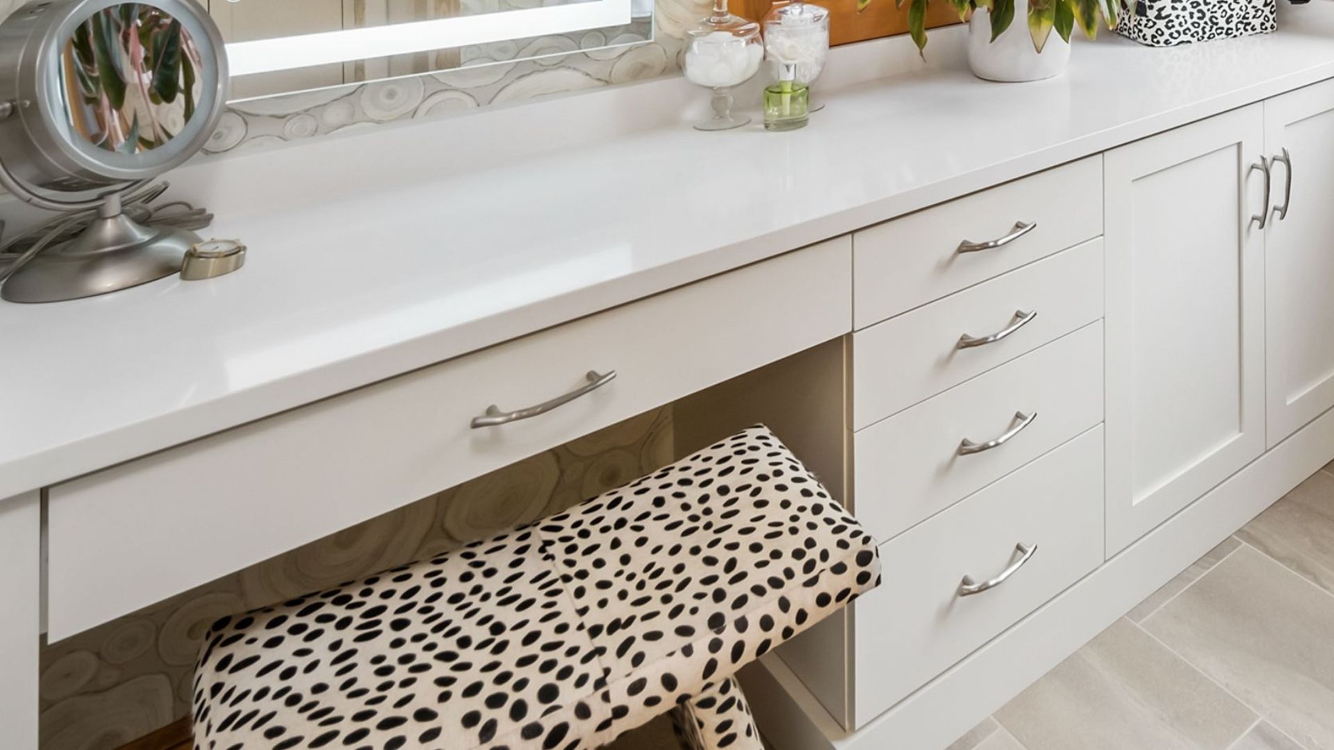 Enhance the ambiance and practicality of your bathroom by incorporating built-in lighting tailored to your vanity space.